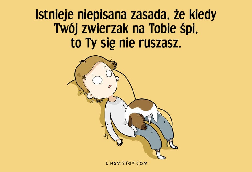 Najgorsze jest to, że kiedy kładą się na Tobie, to jest Ci całkiem wygodnie, ale po półgodzinie, Twoje nogi zaczynają cierpnąć i po prostu musisz się poruszyć. Tylko że one sprawiają wrażenie, że jest im tak wygodnie…