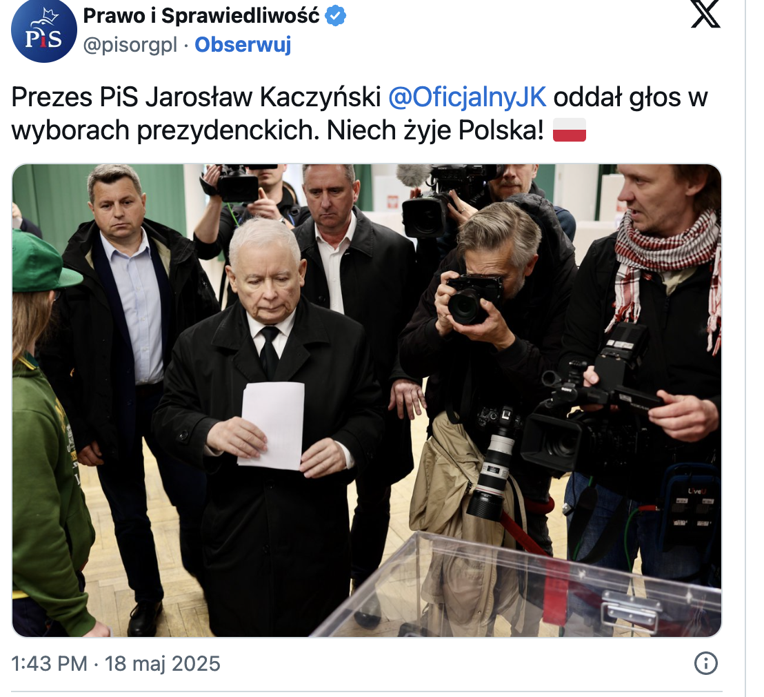 W niedzielę 18 maja 2025 r. o godzinie 7:00 rozpoczęło się głosowanie w ramach pierwszej tury wyborów prezydenckich. Lokale były otwarte do godziny 21:00, a uprawnionych do głosowania było blisko 29 milionów obywateli. Wśród głosujących pojawiło się wiele znanych twarzy ze świata polityki, w tym Jarosław Kaczyński, który… nie okazał dowodu osobistego.