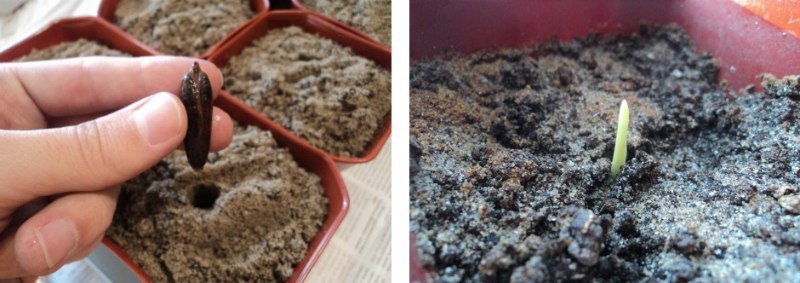 Doniczkę postaw w ciepłym miejscu. Nasiona włóż do ziemi pionowo, ok 1,5 cm. pod powierzchnią. Na końcu podlej.