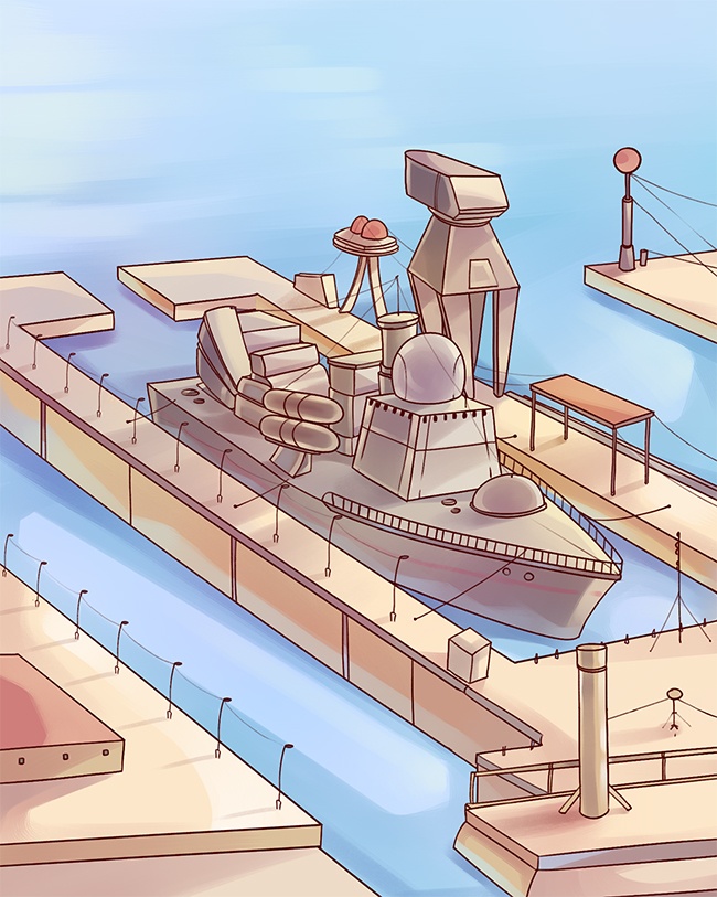 Czy tak duży okręt zmieściłby się przez wpływ do tej przystani? Oczywiście, że nie – jest za wąski…