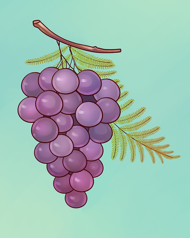 Zamiast liścia winogrona jest paproć.